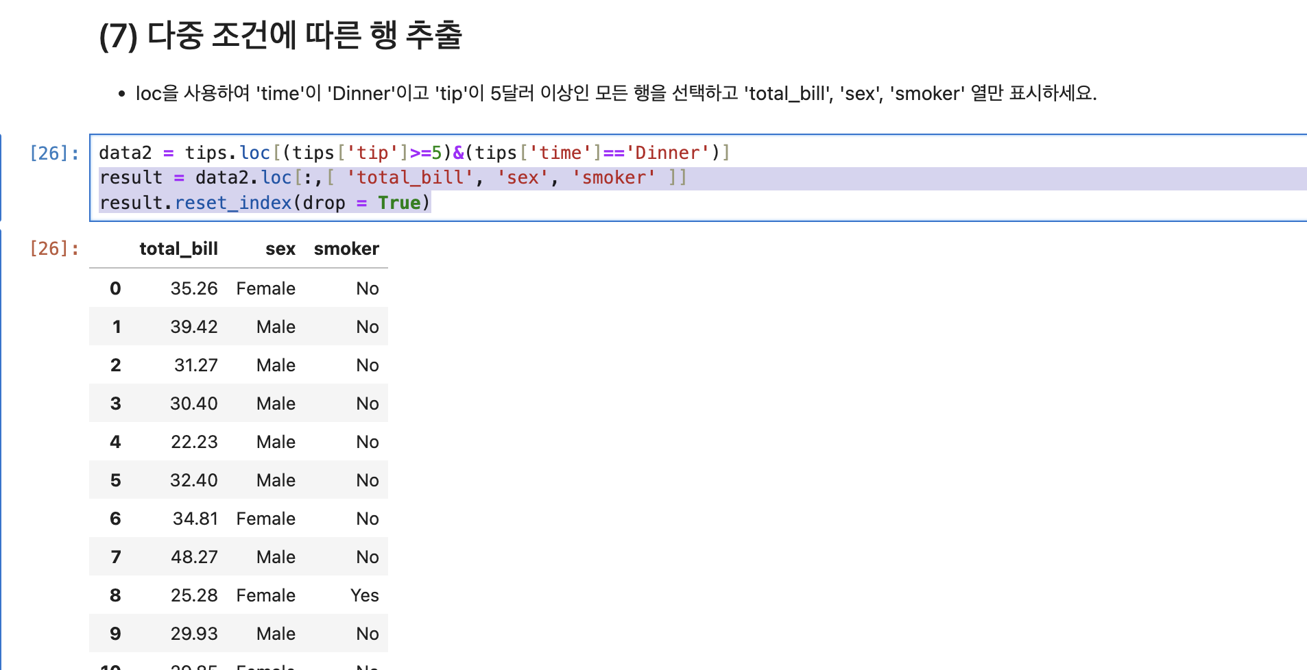 tips.loc[:2,:]와 tips.iloc[:2,:]의 결과값이 다른이유이다.