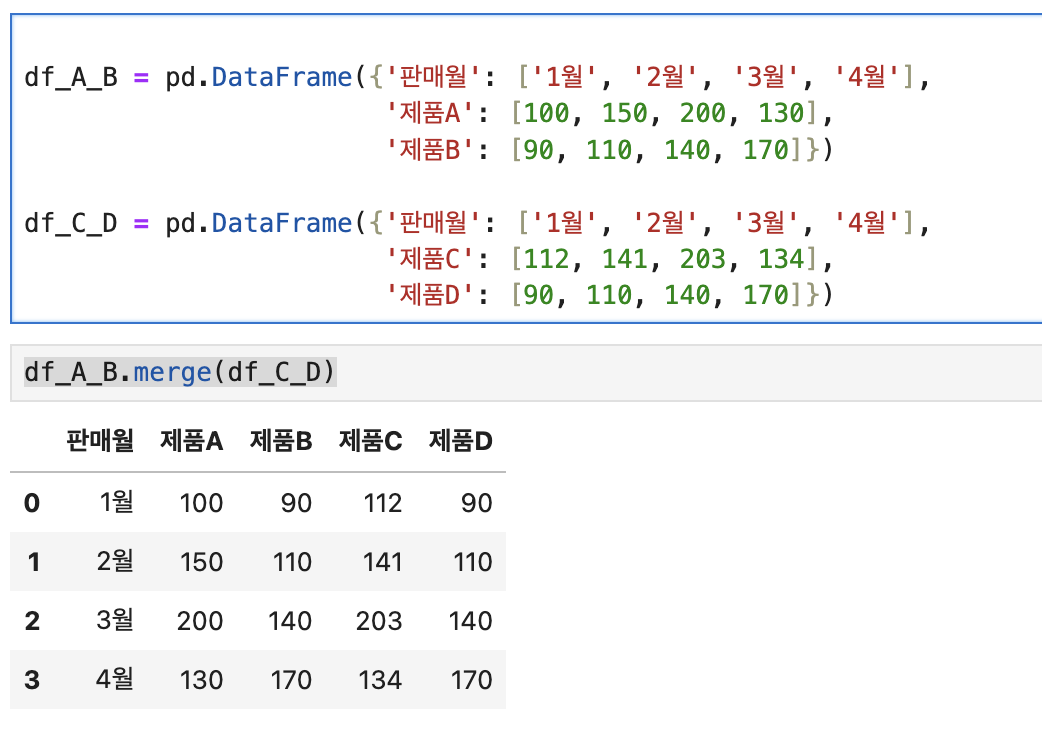 [pandas]가로방향 데이터 통합 merge() 실무에 자주 쓸 느낌
