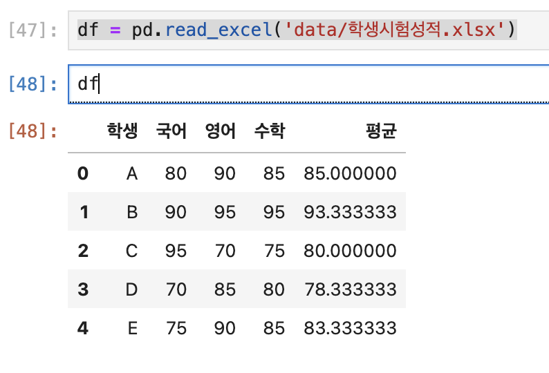 엑셀파일을 불러오기위해 ()안에 경로만 적어준다.