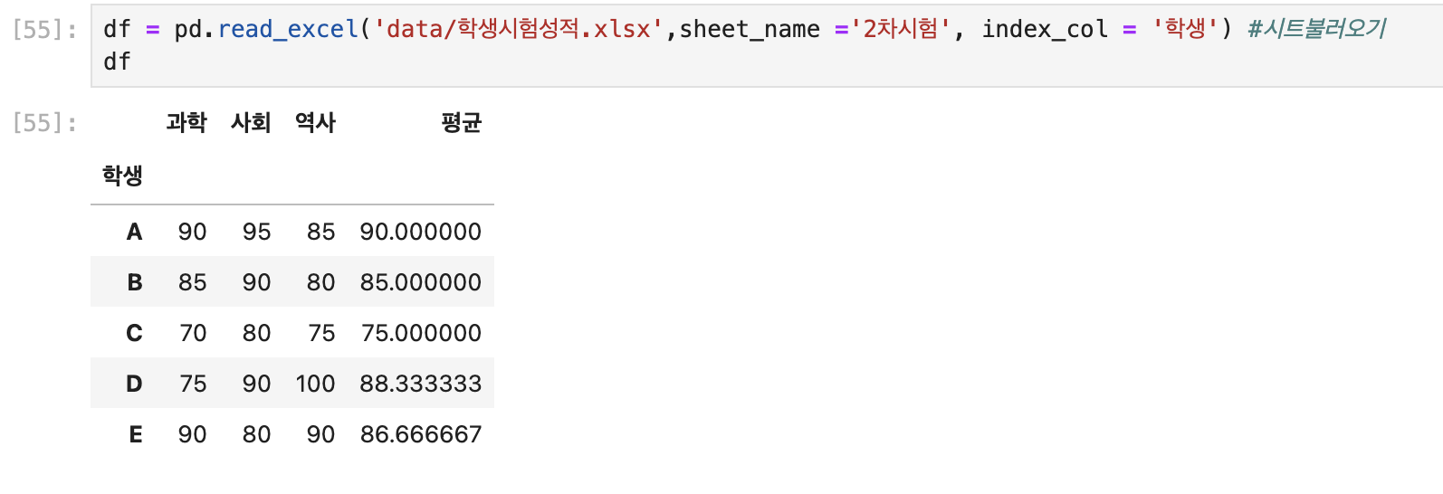 엑셀은 시트가 나누어져 있는 경우 경로뒤에 sheet_name을 써주어야 한다.