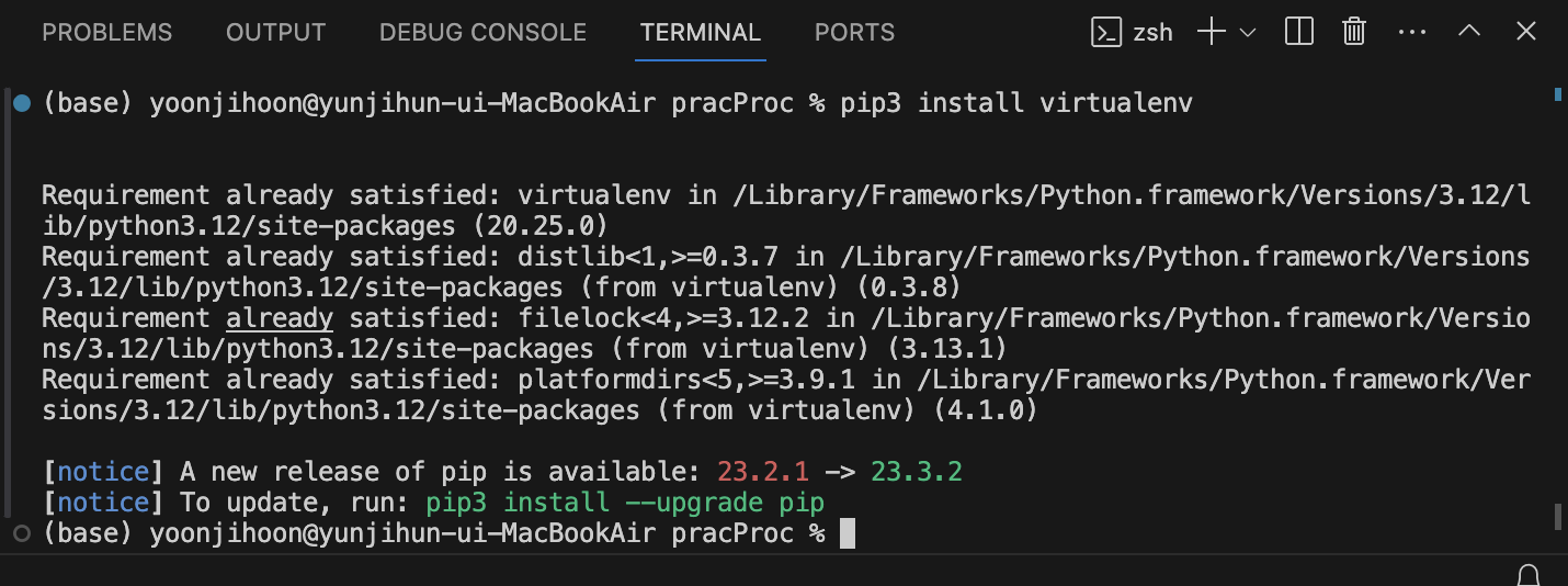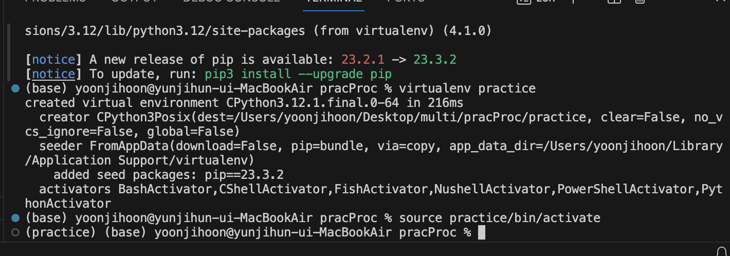(practice) 가상환경이 셋팅이 된걸 알 수 있음